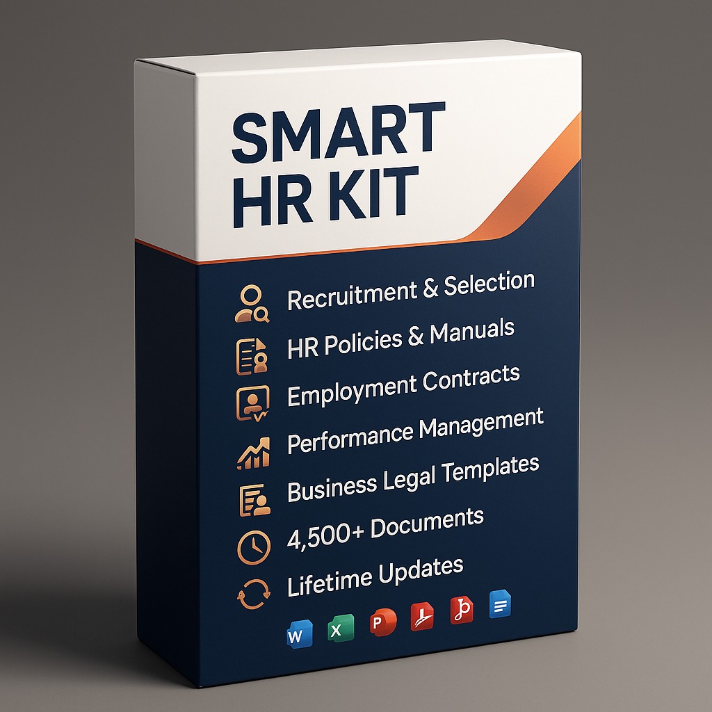 Streamline your HR processes with the Smart HR Kit, a comprehensive collection of 4,500+ customizable HR and legal templates. Designed for businesses of all sizes, this toolkit includes policies, SOPs, KPIs, and agreements, ensuring compliance and efficiency. Enjoy lifetime access, regular updates, and free monthly consultations to simplify your HR management. Perfect for saving time, reducing outsourcing costs, and maintaining compliance with ease.